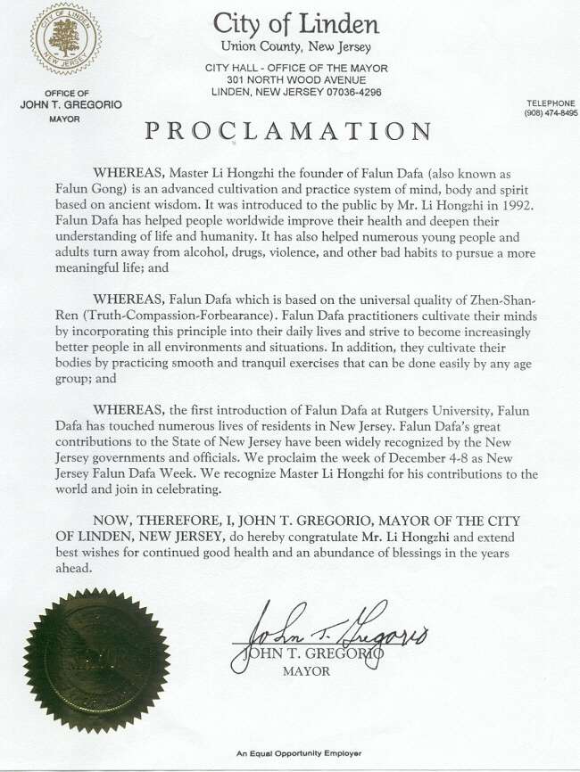 在公告中,Gregorio市長讚揚了法輪大法幫助了全世界範圍內的人民改善了健康,也幫助了無數年輕人及成人遠離了酗酒,吸毒,暴力,和其它不好的行為,從而過上了更有意義的生活。Gregorio市長還讚揚了李老師對全世界所做出的貢獻,並向李老師致以最良好的祝願。