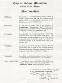 喬治亞州石頭山市宣布「法輪大法月」