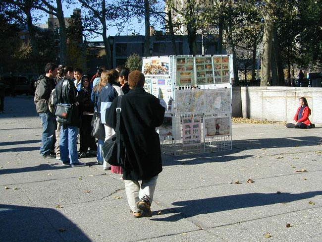 當日大約有五十名紐約當地的法輪功學員在新聞發布會現場煉功、打橫幅、布置「正法之路」圖片展。過往行人紛紛駐足,瀏覽圖片,與學員交談。Bay News、世界日報、新唐人電視台、大紀元時報等媒體到會並對學員進行了採訪。