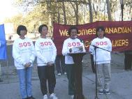 11月9日中午她們參加了紐約布魯克林區區政府旁的公園召開的新聞發布會。會上步行學員說出了自己的心聲:「因為江澤民集團控制著中國所有媒體,他怕世界上所有人知道他無理打壓法輪功的罪惡行徑,江氏靠誣陷、造謠、撒謊欺騙人民,維持著他的專制集權。因此我們決定用自己的心、自己的腳走出去,向那些受矇蔽的人講清真象,向那些不了解法輪功的人傳遞「真、善、忍」的訊息。」