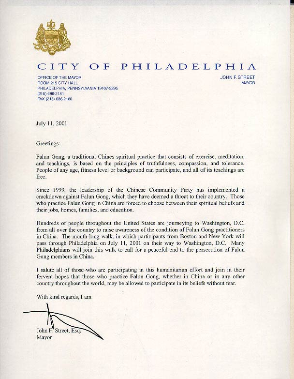 成百上千的人正在從美國各地奔赴華盛頓特區,以求讓大眾了解中國法輪功學員的情況。波士頓和紐約的參加者經歷一個月的步行,將於 2001年7月11日途經費城抵達華盛頓特區。許多費城人亦將加入這一步行,呼籲和平解決法輪功學員在中國遭受的迫害。