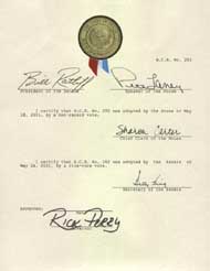 簽字:參議院主席:比爾.拉特利 眾議院院長:比特.蘭尼