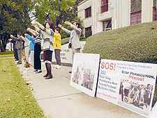 【明慧網2002年10月21日】德克薩斯東部的小城-泰拉爾,是美國的「玫瑰之都」。小城美麗而平靜,當地的人們安祥而友好。2002年的10月19日,小城迎來了一群善良而富有正義感的客人。