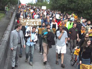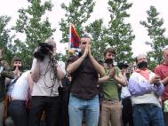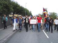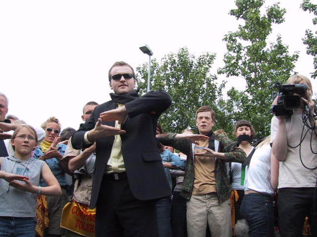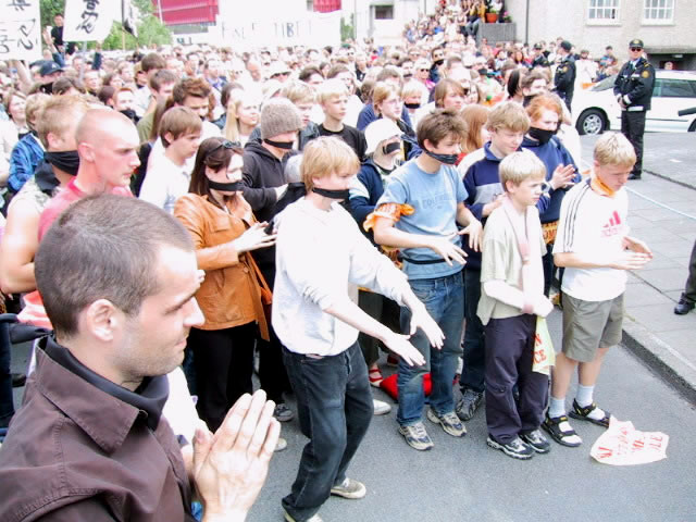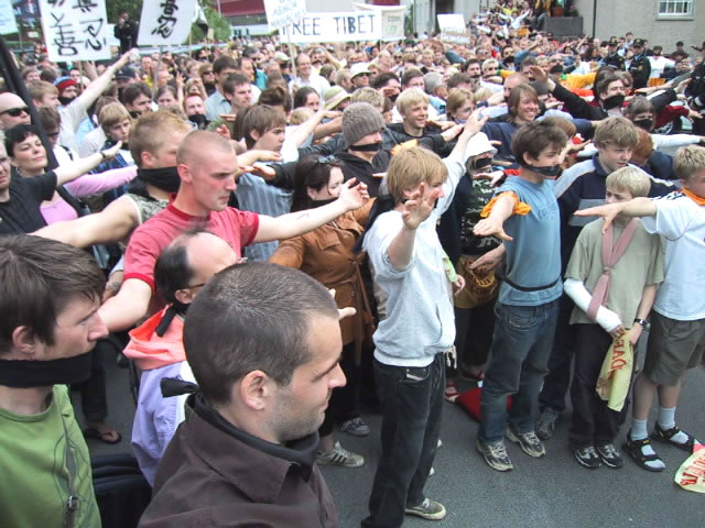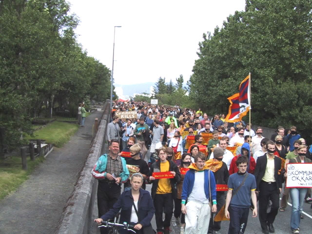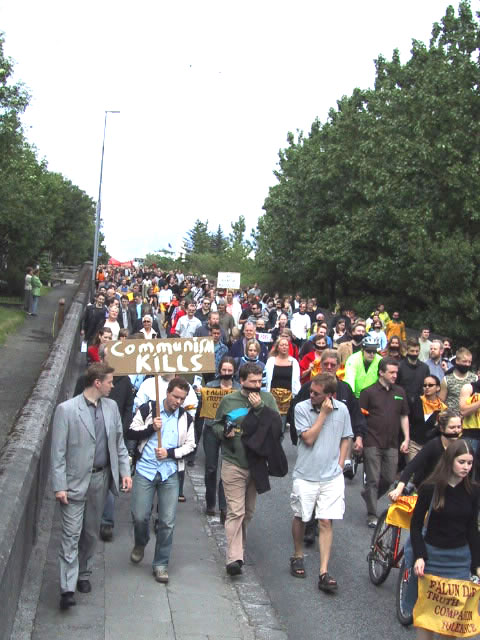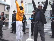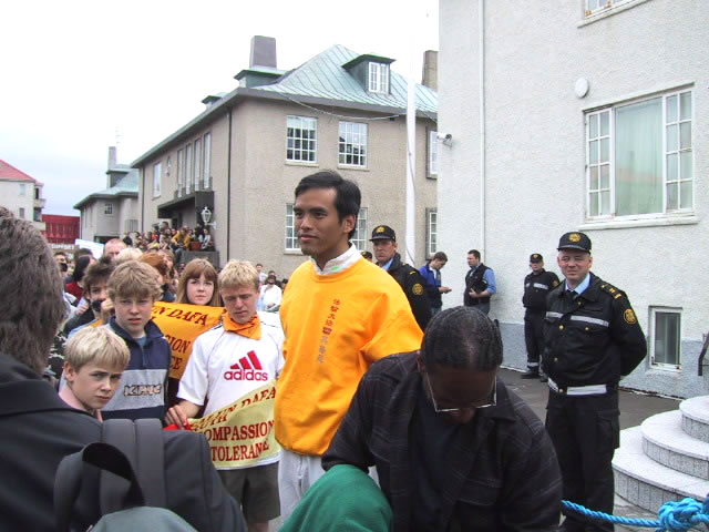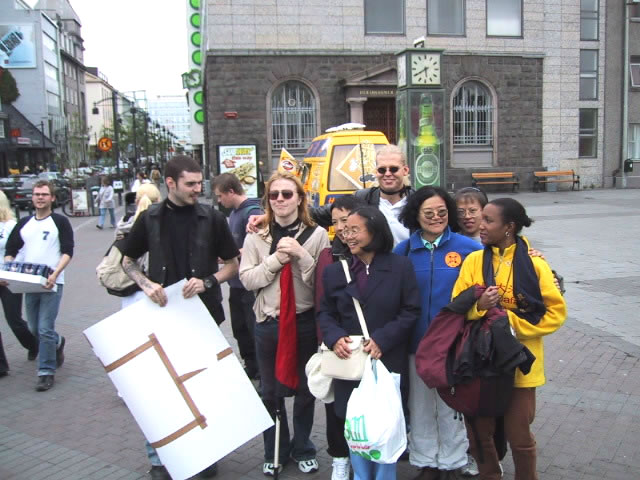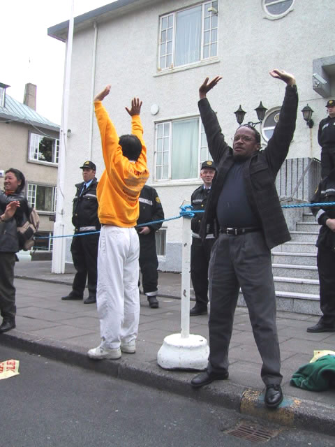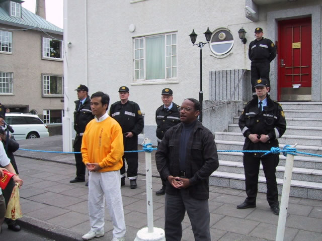 6月14日江澤民在冰島訪問期間,人口有限的雷克雅維克舉行了近三千人(原定一千人)的大規模示威,抗議到訪的江澤民對法輪功學員的人權侵害。示威群眾手舉法輪功橫幅,用黑布條封口,以示對冰島政府違背民意、錯待法輪功的不滿。