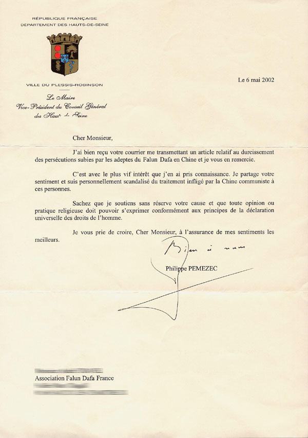 法蘭西共和國上塞納省(Departement des Hauts-de-Seine)普萊西斯-羅般松市(Plessis-Robinson)市長上塞納省參議會副主席