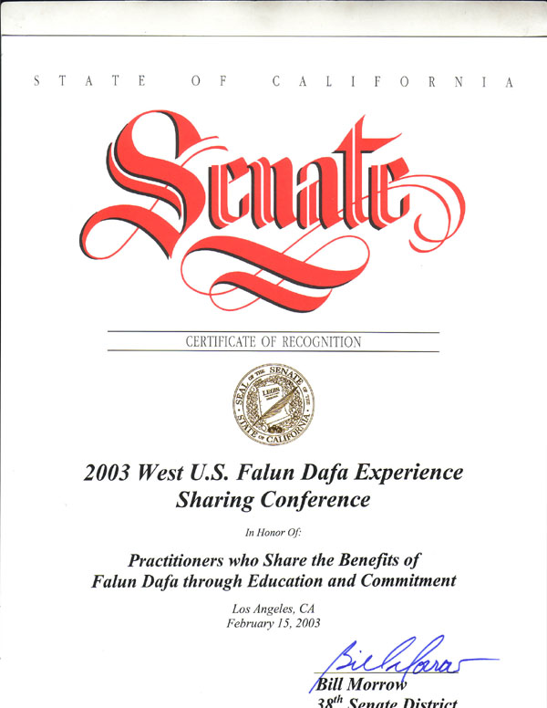 加利福尼亞州洛杉磯市2003年2月15日(簽名)比爾-莫羅(Bill Morrow)第38參議區