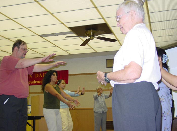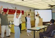 最後,前來參加慶祝活動的當地居民認真學習了法輪功功法。