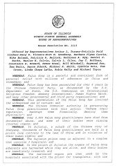 決議:我們要求美國政府禁止所有對被囚禁者執行活體器官摘取的醫師進入美國,譬如對蘇家屯獄所裏遭囚禁的人身上摘取器官;且