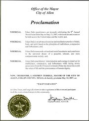 現在,我,Stephen Terrell,美國德州Collin縣艾倫市市長,特別宣布二零零七年五月十三日為