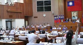![]() 台南縣議會臨時會中,議員舉手表決通過譴責中共活摘器官暴行的臨時提案 |