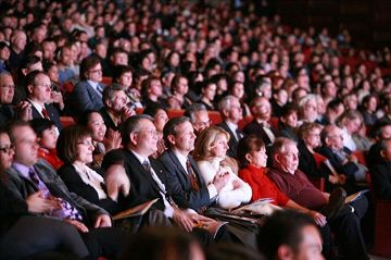 ![]() 一月十八日晚,新唐人全球華人新年晚會在多倫多索尼中心上演,觀眾們聚精會神的觀賞演出 |