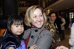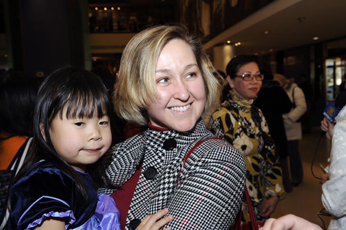![]() Chris Arthur 帶著從廣西領養回來的女兒Adeline一起看晚會。她們表示明年還會來看 |