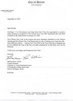 ![]() 底特律市長科威明•基派崔克(Kwame Kilaptrick)的賀信 |