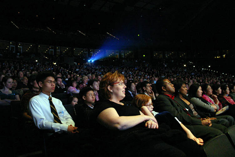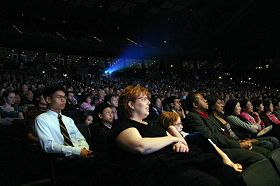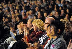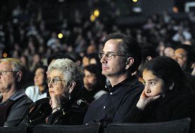 ![]() 全球華人新年晚會達拉斯諾基亞劇院(Nokia Theatre)現場觀眾聚精會神觀看演出。 |