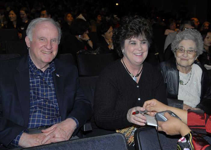 她的先生(Dennis Reeder )是美國人,他情不止禁接著說:「我有一個總結,整台節目所展現的是『真、善、忍』。」他還說:「這些節目都有中英文,我們能看懂,三位男演員唱的太棒了。」這對夫妻表示:非常高興、值得來看。
