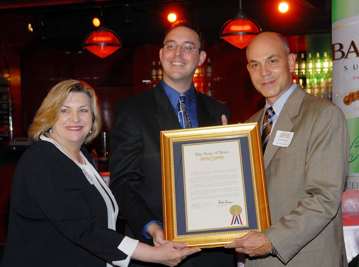 ![]() 德州州議員Paula Pierson和Kirk England親臨現場頒發褒獎晚會的決議案。 |