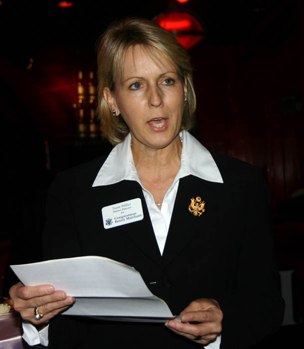 ![]() 德州國會議員Kenny Marchant辦公市主任Susie Miller女士宣讀賀信。 |