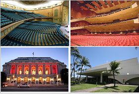 ![]() 從十二月廿六日開始,神韻藝術團將在美國西部的聖地亞哥、洛杉磯、舊金山、西雅圖、波特蘭、丹佛、鳳凰城和檀香山八座城市上演三十五場晚會,圖為即將上演神韻晚會的洛杉磯、聖地亞哥、舊金山和檀香山的劇院。 |
