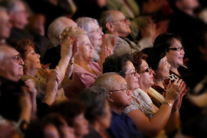 ![]() 戊子年大年初一,紐約觀眾在欣賞新唐人華人新年晚會 |