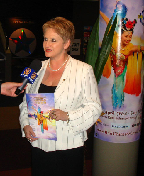 Ficarra女士表示:「我很高興今晚能來觀賞這個晚會,讓我更了解中國五千年的文化。演出、場景都很壯觀、豐富。舞蹈演員身體高度的相互協調與技藝表演,還有男中音、女高音等,連主持人主持的方式,一切都非常非常的專業。」