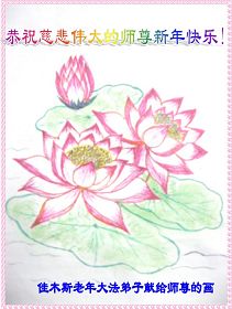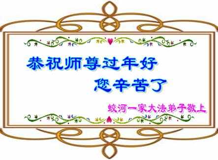 我們一家三口在新年即將來臨之際,祝福師尊新年快樂!在原先我們一家還有許多不足的地方,但是在以後的修煉路途中,我們會互相鼓勵,互相督促,走好以後的修煉路。不忘師恩。