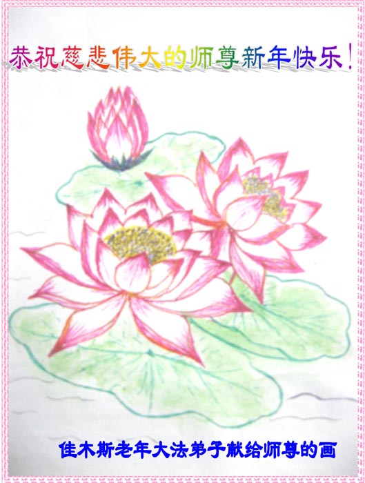 我們是佳木斯老年大法弟子,今天畫了一幅畫,祝師尊新年快樂!