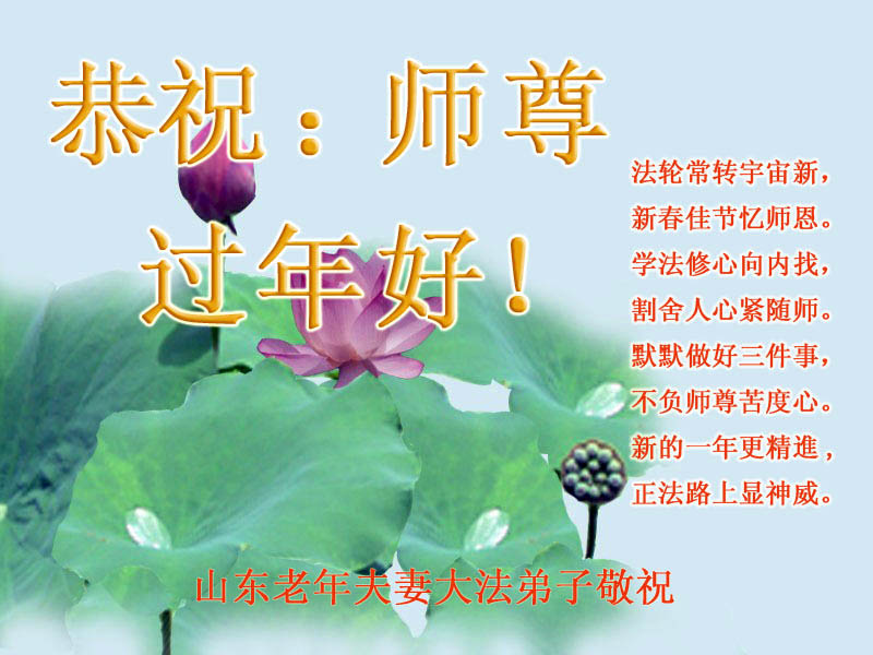 山東老年夫妻大法弟子恭祝師尊過年好!