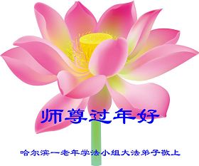 哈爾濱一老年學法小組大法弟子敬祝師尊過年好!