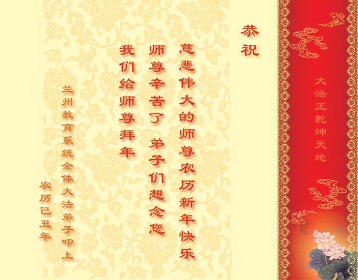甘肅蘭州市教育系統大法弟子給慈悲偉大的師尊拜年!