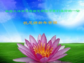 師父您好!您辛苦了!在您的慈悲呵護下,我們走過了風風雨雨的08年,迎來了09年新年,在舉家歡慶的日子裏,我們深知肩負的歷史責任更大,時間更緊,更需認真學法、發好正念,在一思一念上歸正自己,抓緊講清真相,救度世人,圓滿隨師把家還。