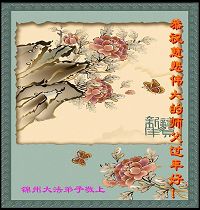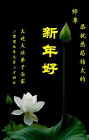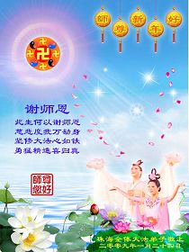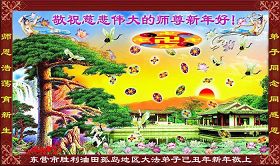 謝謝師父的時時呵護,我們決不退縮,繼續做好師父要求的講清真相,救度眾生,時時修心性,嚴格要求自己,不枉師父的慈悲苦度。再一次祝師父新年快樂!