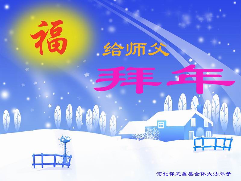 零九年新年到了,定興縣部份大法弟子恭祝師尊新年好,弟子們一定努力做好,讓師尊少一份操勞,多一份欣慰。合十