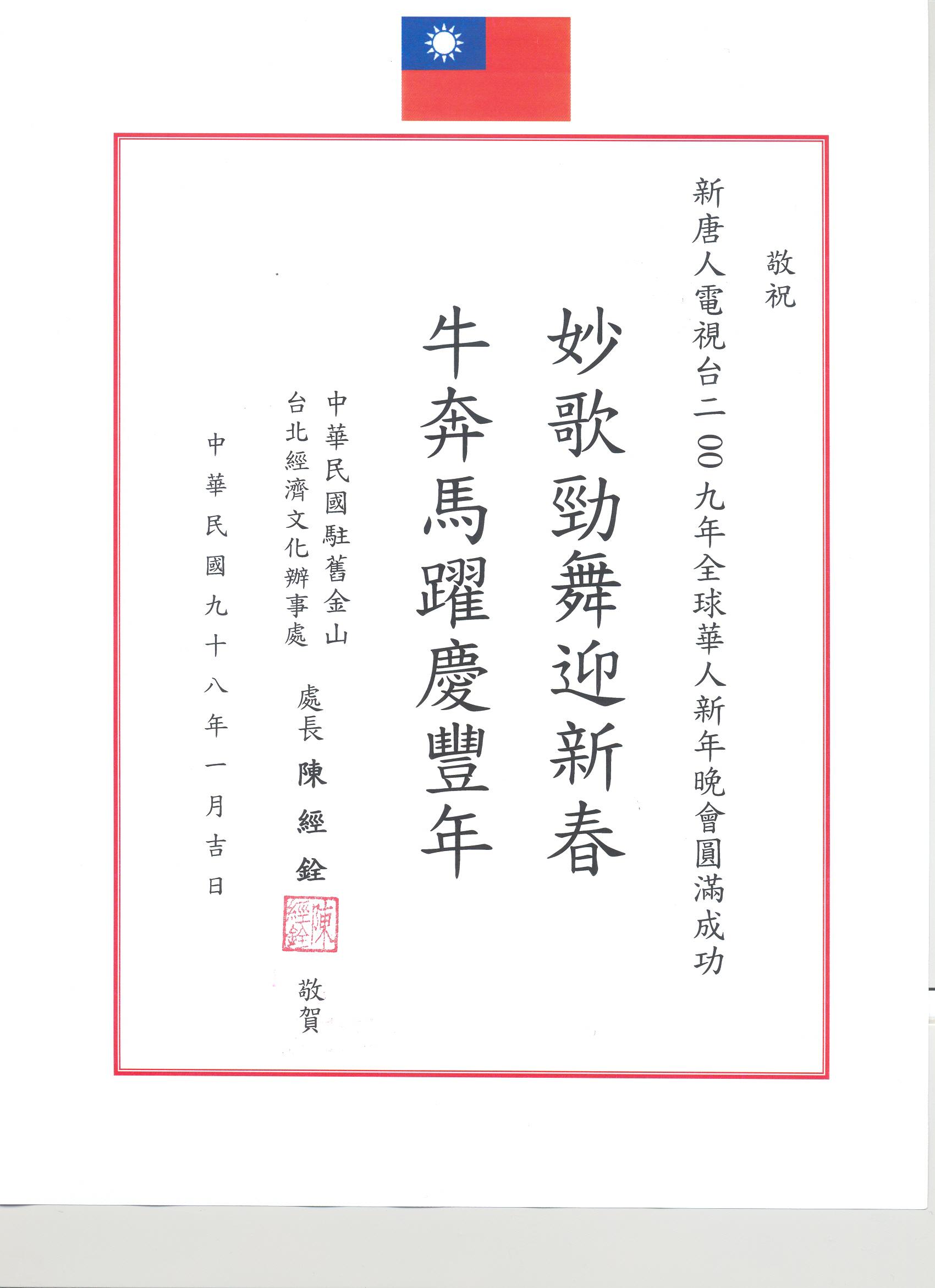 ![]() 中華民國駐舊金山台北經濟文化辦事處祝神韻晚會圓滿成功。 |