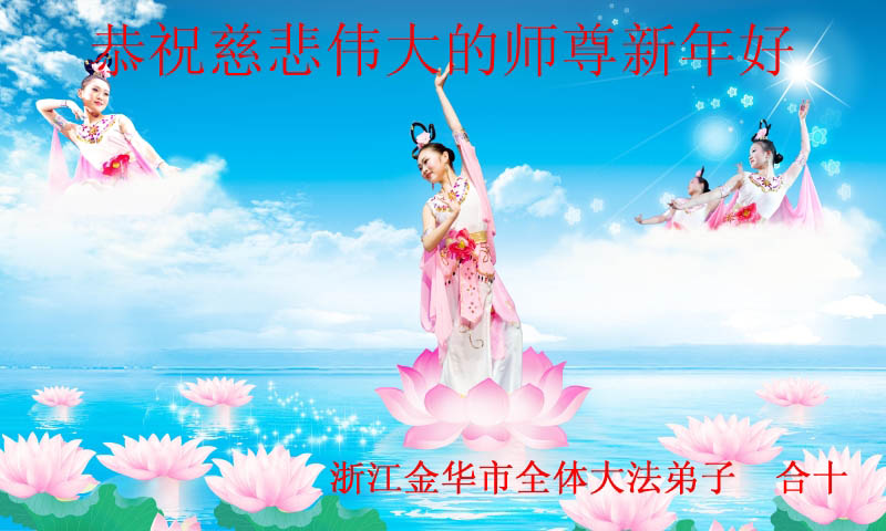 師尊您好!師尊您辛苦了!在新的一年到來之際,我們誠摯的向師尊問好:師尊新年好!在新的一年裏,我們會更加精進,遵照師尊的教誨,認真學好法,努力做好三件事,修好自己,多救人,完成我們大法弟子的使命,助師正法,兌現史前誓約。