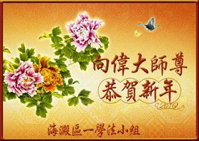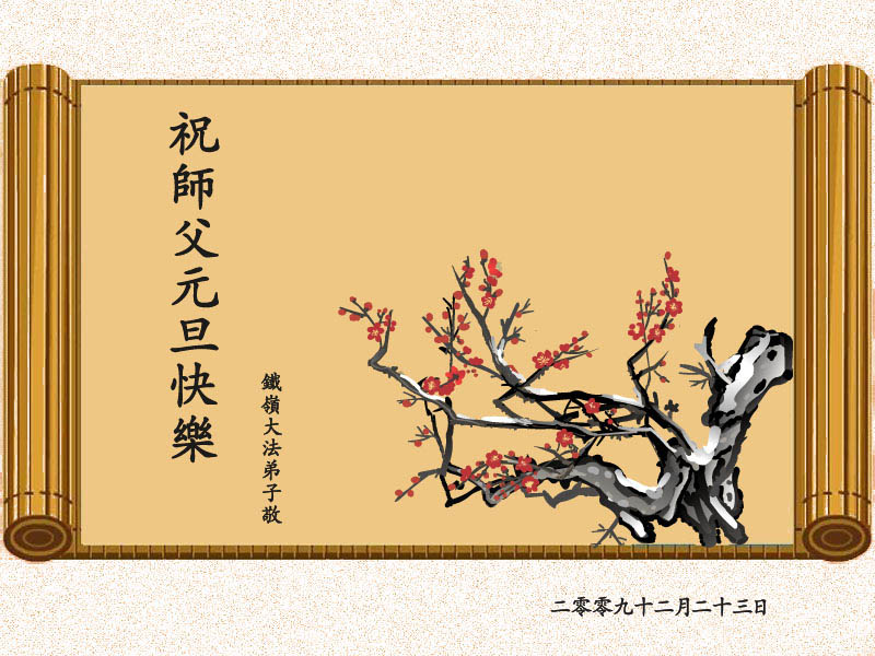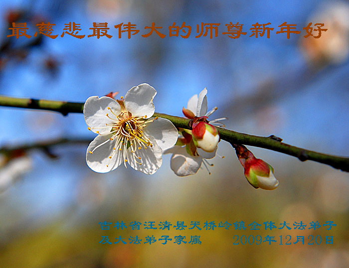 在不平凡的二零零九年即將過去,更加輝煌的二零一零年就要來臨之際,我們小組全體大法弟子,衷心的向師尊問好!並熱誠的祝願師尊新年快樂!!
