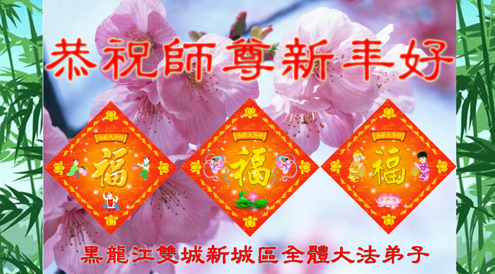 慈悲偉大的師尊:我代表齊齊哈爾地區的大法弟子給您拜早年了!為了弟子和眾生,您辛苦了!請您放心,我們一定會多學法、學好法,穩健的走好最後的修煉的路。無論是逆境還是順境,我們都將堅修大法不動搖,努力的救度眾生,做好三件事。