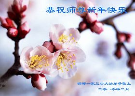 師尊您辛苦了!新的一年已經開始了,請師尊放心,願我們鐵西學法小組的全體大法弟子更加重視整體性、深刻性,講清真相救度眾生更上一層樓。在做好三件事上更加精進,一定要對得起正法時期大法弟子的稱號,請師尊放心。再一次祝師尊新年快樂!