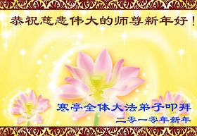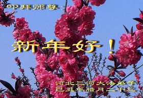 師尊您好!轉眼又是一年新春到。過去一年裏,您為眾生操盡了心,謝謝您!您辛苦了!在家家團聚的日子裏,大陸弟子非常想念您,盼著和您一起過年!衷心祝您過年好!