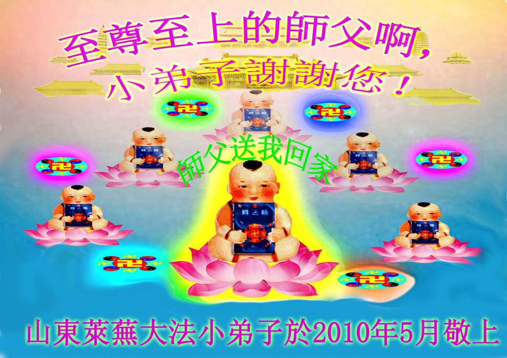 感謝師父慈悲苦度!我是正法時期的大法小弟子,可有些不足,弟子們以後一定要勇猛精進,努力去做好您要求的三件事,不辜負您的慈悲苦度,做合格的大法小弟子,圓滿隨師還!