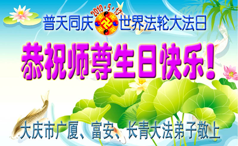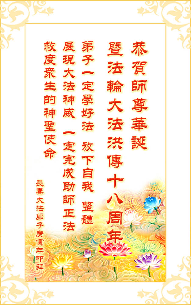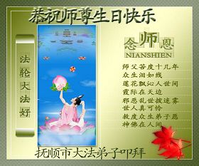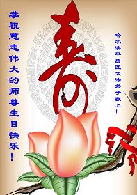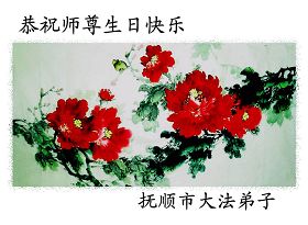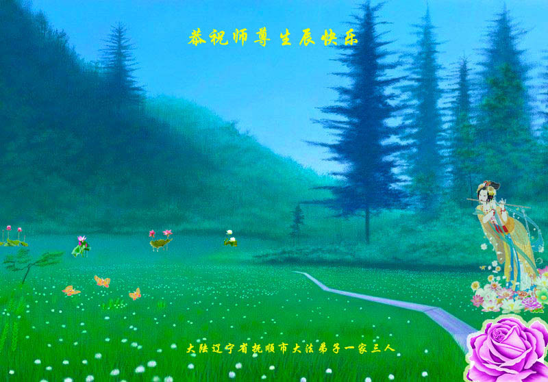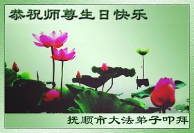 偉大慈悲的師尊:您辛苦了!千言萬語表達不了我們對師尊的敬意。撫順的弟子們日夜思念您!我們多麼想早日見到您啊!弟子們衷心的祝願師尊生日快樂!我們一定珍惜這最後的萬古機緣,勇猛精進,遵照師尊的要求做好三件事。抓緊救度更多的眾生,穩健的走好最後的路,不辜負師尊的慈悲苦度。跟上正法的進程,完成史前洪願。敬請師尊放心,不論修煉路上有多少艱難險阻,我們堅信師尊,堅信大法,走好、走正師尊安排的修煉之路,助師正法圓滿隨師還。