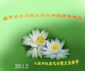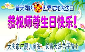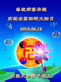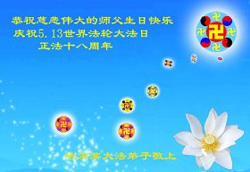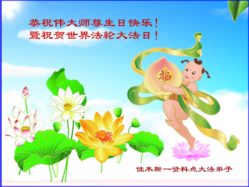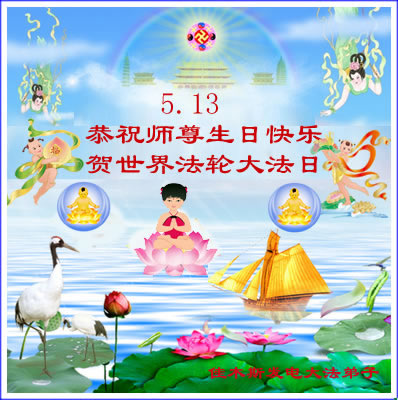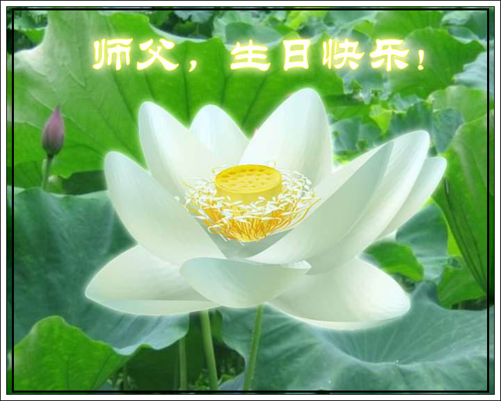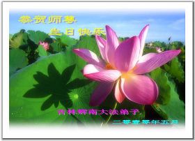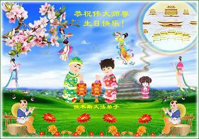 師父您好,弟子們想念您!恭祝師父生日快樂!普天同慶世界法輪大法日!我們一定聽師父的話,精進實修,救度眾生。認真做好大法弟子的三件事,不辜負師父的慈悲苦度,兌現史前的誓約。