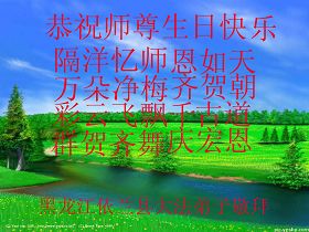 眼看您的聖誕日即將到來,弟子感懷發自肺腑:祝師尊生日快樂!真是:山高水長,道不盡弟子對師尊的祝願;天大地大,表不完弟子對師尊的感恩!弟子唯有精進!精進!再精進以謝師恩!