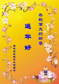 我是吉林通化大法弟子。我們一家三口都是師父的弟子。值此過大年之際,全家一起恭祝我們慈悲偉大的師父過年好!我們一定聽師父的話,走好以後的路。