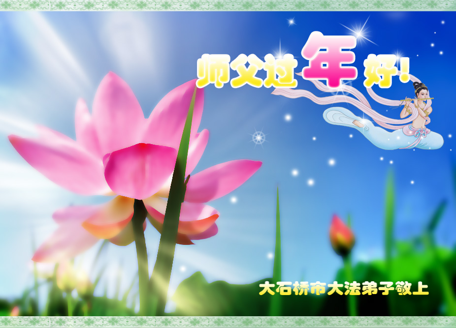 在新年即將到來之際,我代表威海一鄉鎮所有大法弟子及我的家人向尊敬的師父拜年:師父過年好!您辛苦了!!感謝您的慈悲救度!!!