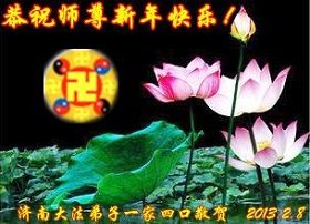 山東省濟南大法弟子一家四口恭祝師尊新年快樂!
