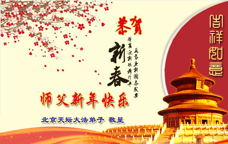 北京天壇大法弟子叩拜師父,恭祝師父新年快樂!