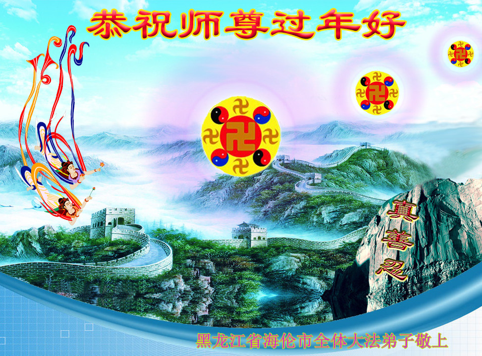 黑龍江省綏化市海倫市全體大法弟子恭祝師尊新年快樂!
