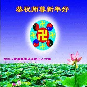 在此新春之際,我們四川一家庭煉功點全家7人恭賀師父新年好!我們深知沒有師父的慈悲承受,世上的生命就不會還「幸福」的活到今天,千言萬語難謝師恩,唯有精進實修多救人才能對得起師父慈悲苦度。