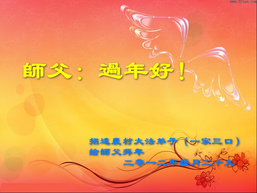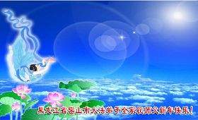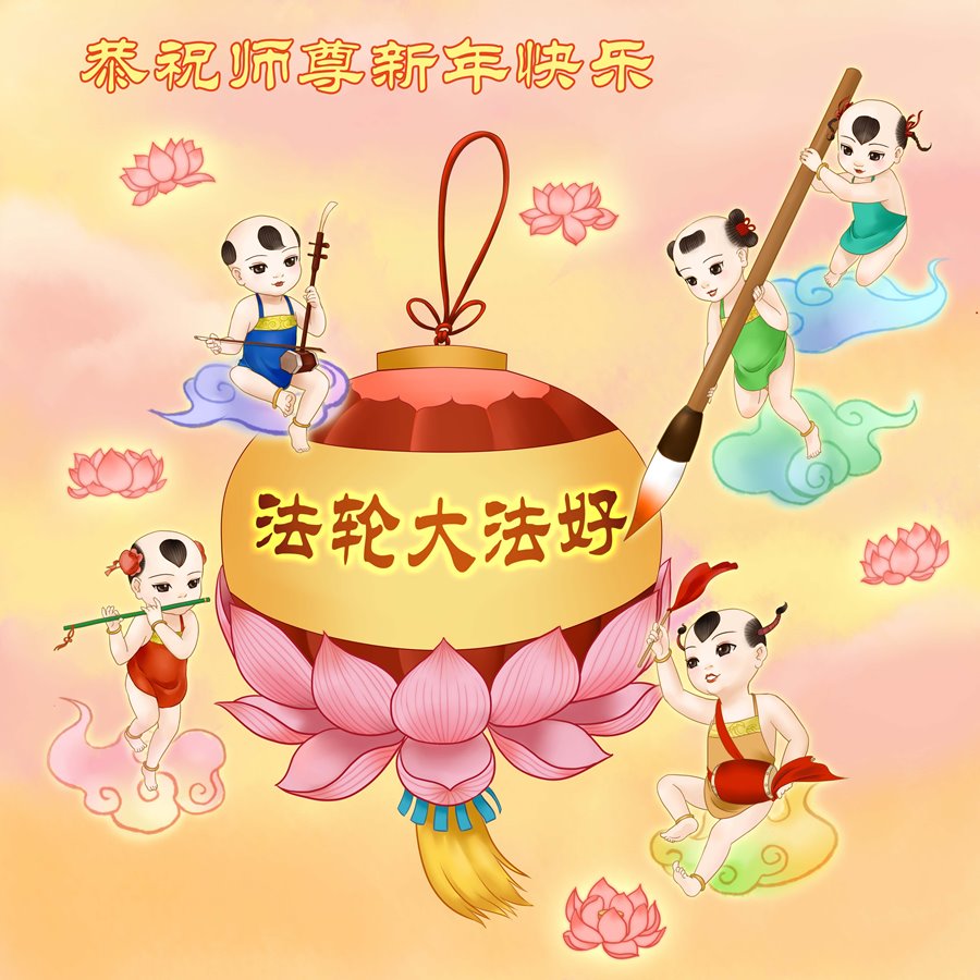我們全家大法弟子給慈悲偉大的師尊拜年!了!恭祝師尊新年快樂!感謝師尊的慈悲救度!在新的一年裏,我們全家大法弟子一定精進實修,做好三件事,助師正法,抓緊時間救人,和師尊一起回家!