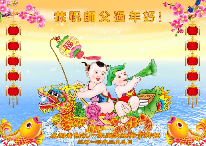 四川省成都青白江全體大法弟子恭賀師尊過年好!